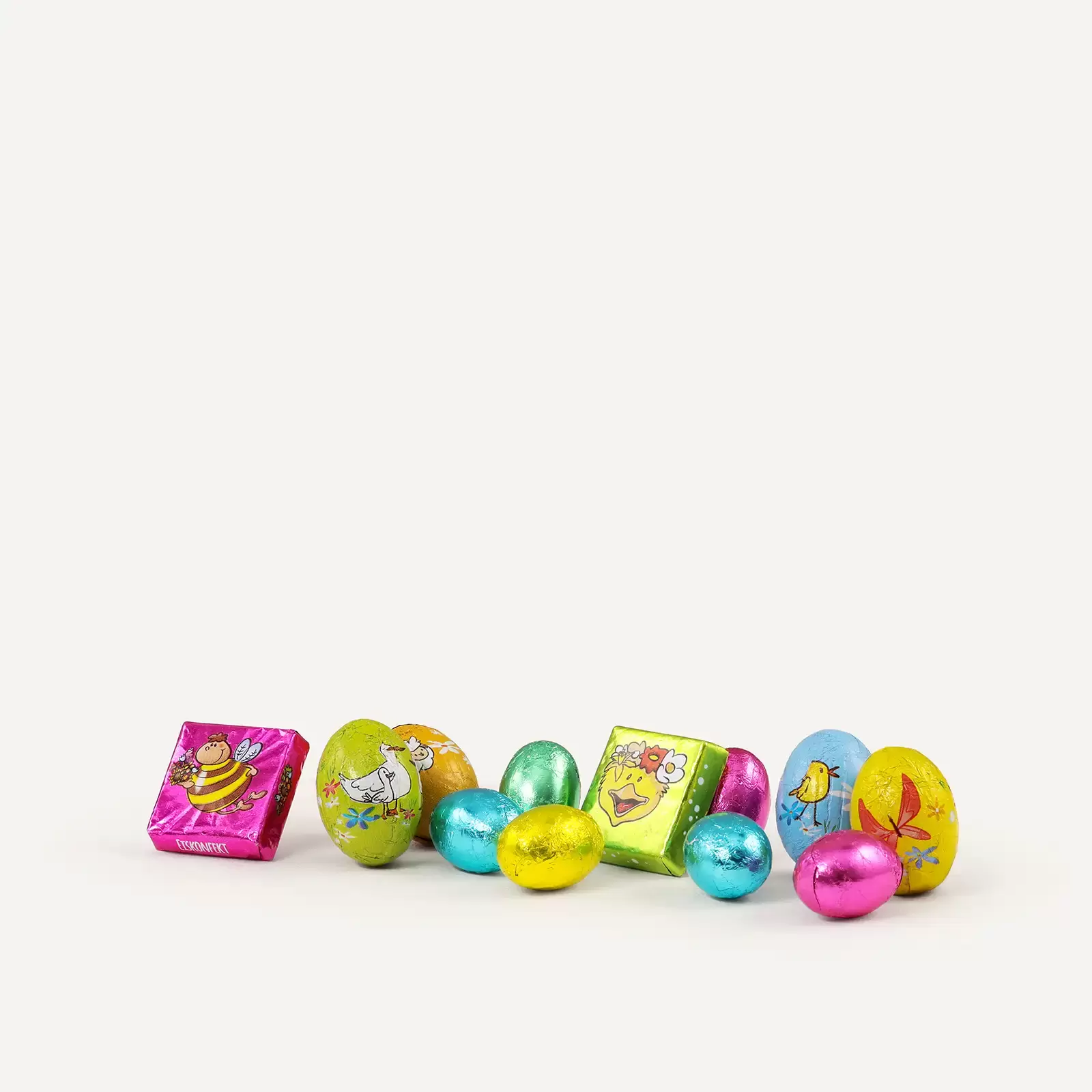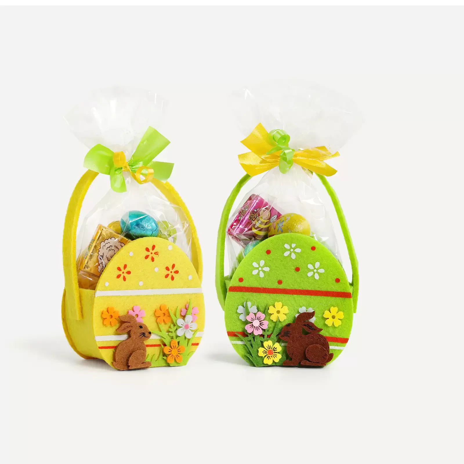 Der Inhalt der österlich gestalteten Filztaschen verheißt große Freude für kleine Naschkatzen: ein Klarsichtbeutel mit kleinen, bunt verpackten Eiern aus Vollmilchschokolade sowie zartschmelzendes Eiskonfekt steckt in den kleinen Ostertaschen, die dann nur noch verschenkt werden müssen. Verpackt in kleine Beutel sind diese Ostersüßwaren ideal portioniert, um kleinen, aber auch großen Menschen kleine Genussmomente und damit große Freude zu bescheren.