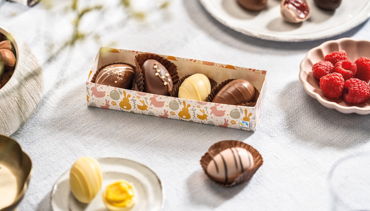 Unsere Manufaktur Eierstange enthält fünf exquisite Schokoladeneier gefüllt mit erlesenen Köstlichkeiten. Diese Vielfalt sorgt für genussvolle Momente und ist ideal als Geschenk oder zum Selbstverwöhnen – ein Highlight für die Osterzeit.