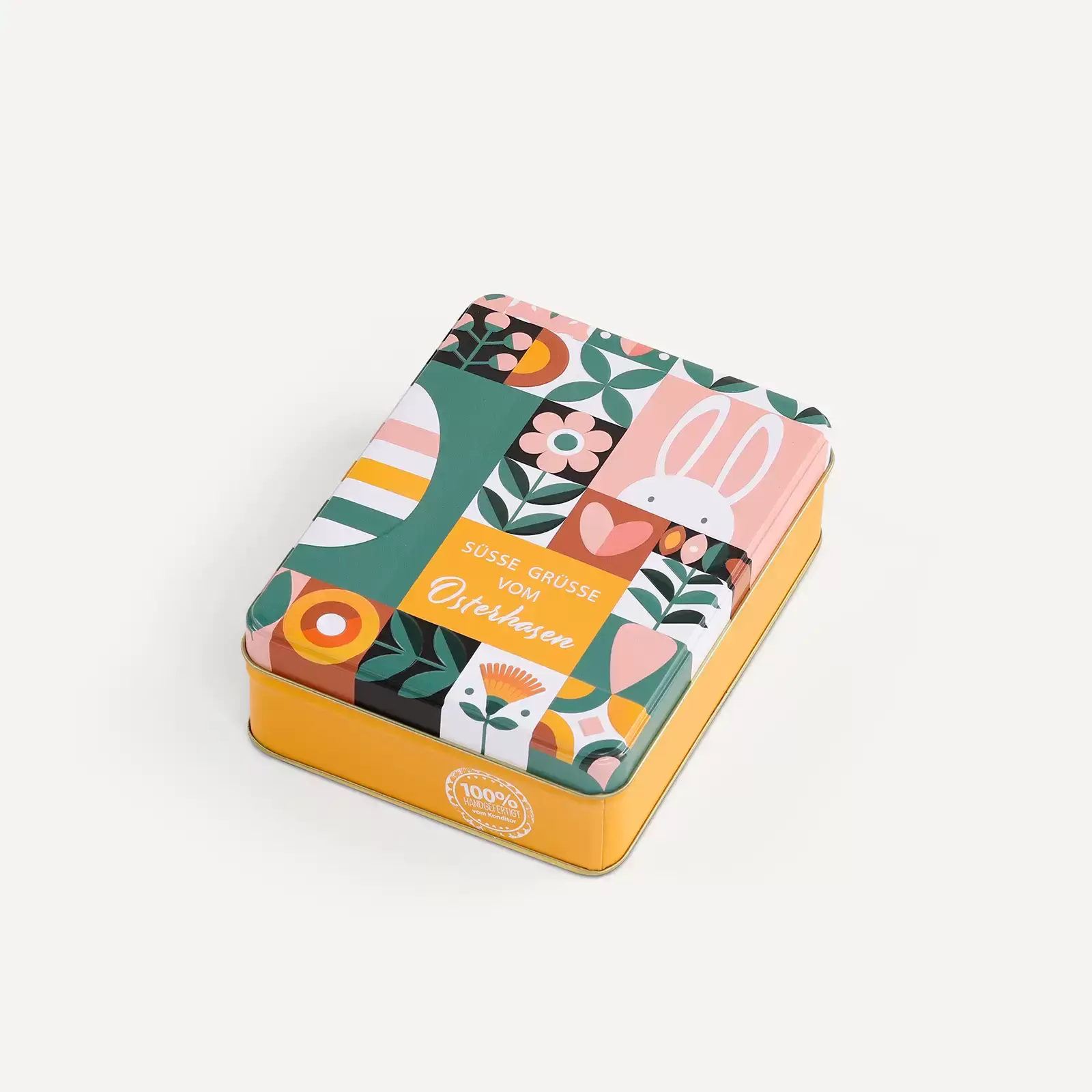 Die kleine Designdose ist ein echter Blickfang, der alle Jungen und Junggebliebenen in Frühlingslaune versetzt und genussvoll auf Ostern einstimmt. So ist sie im ganzen Frühjahr, noch vor Ostern, ein wunderbares Geschenk, mit dem festen Versprechen: „So schön kann Ostern werden!“.