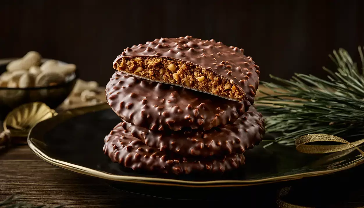 Cashew nuts have a very special taste and are quite rightly one of the noblest nut varieties. This was of course reason enough for our "Lebküchner" (that's what gingerbread bakers are called) to create an exquisite gingerbread recipe that does justice to these extremely tasty nuts. They mixed the finest ground cashew nuts with other nuts and almonds, spread the dough on delicious wafers and, after baking, coated the gingerbread with an exquisite whole-milk chocolate glaze with cashew chips.