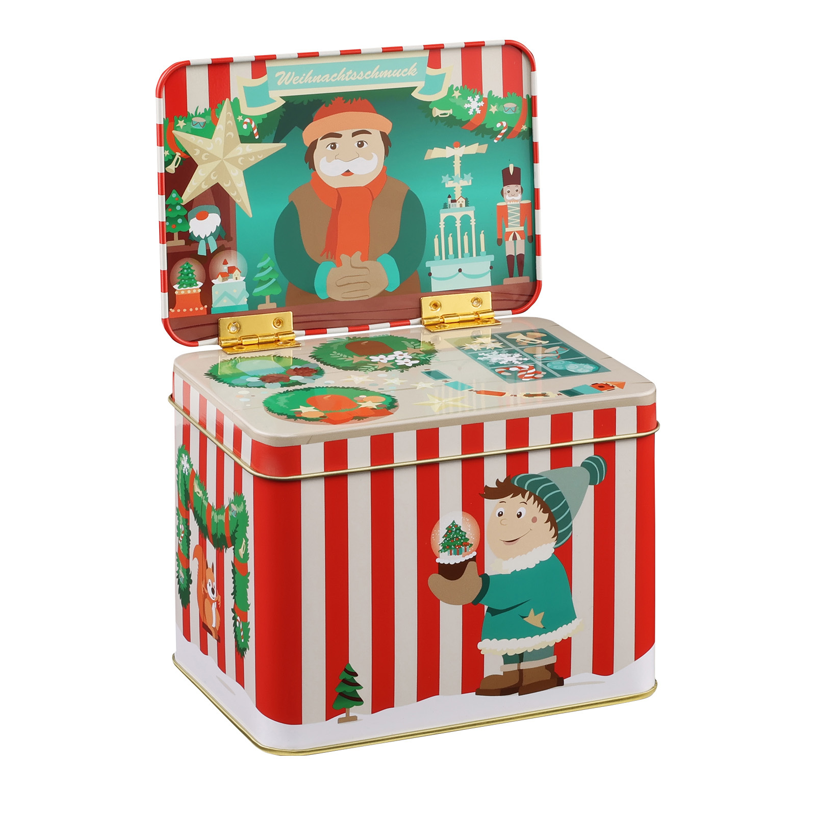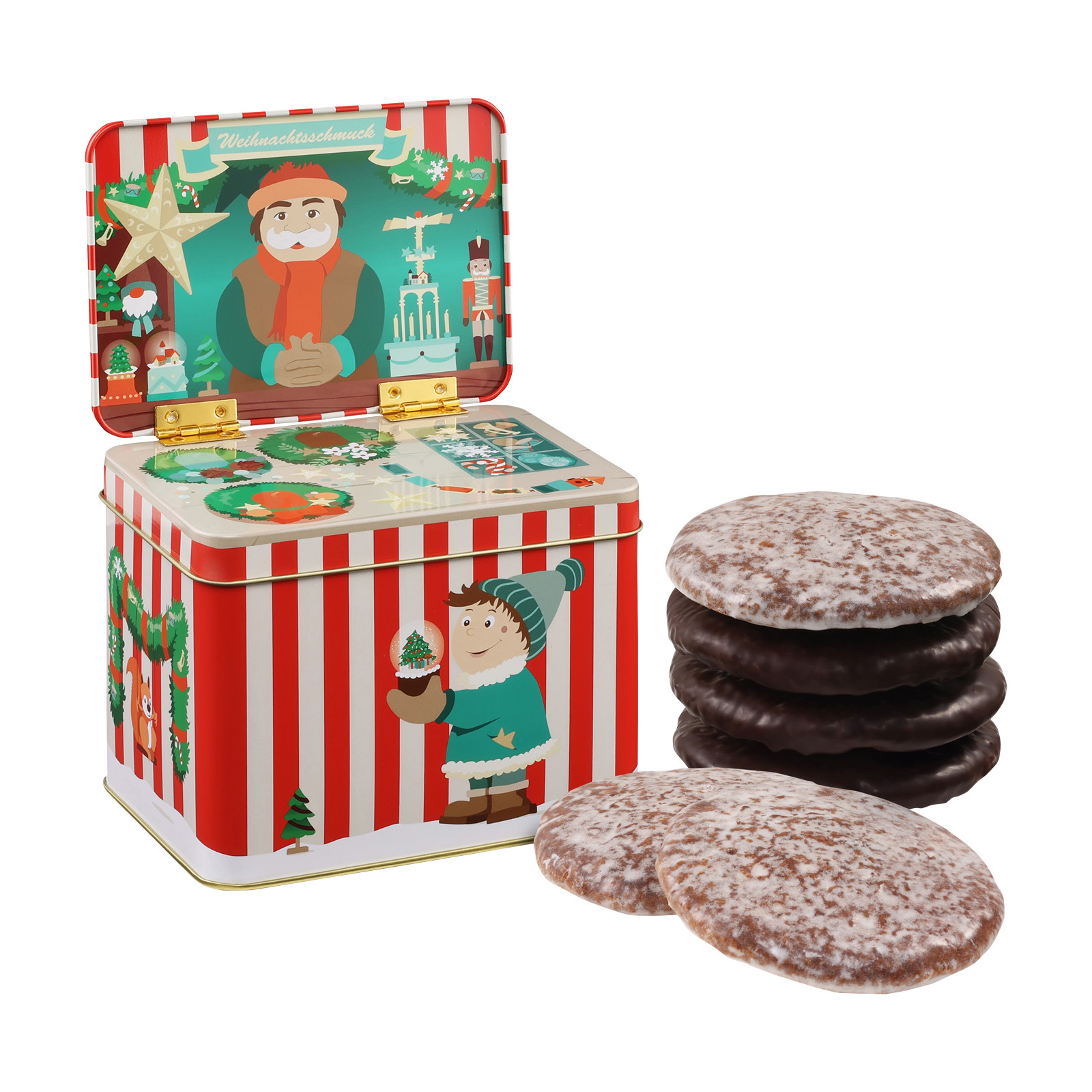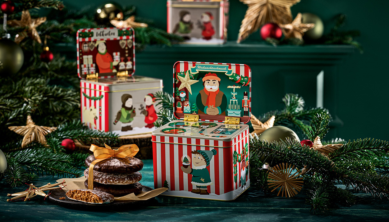 The enchanting Christmas market stall tin will delight gourmets and collectors of all ages: This detailed metal tin transforms into a charming gingerbread Schmidt stall as soon as the lid is opened, instantly transporting you to the magical atmosphere of a Christmas market.