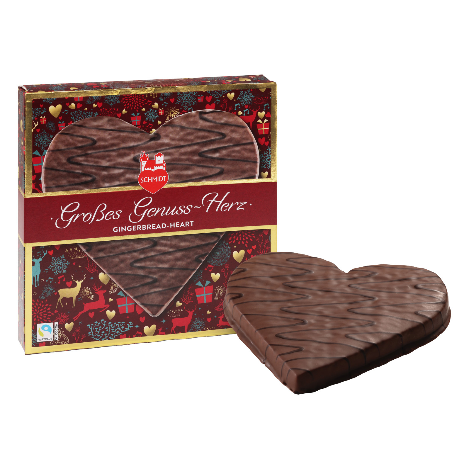For centuries, the heart has stood for love and passion. We show these feelings in the form of our 290 g gingerbread heart, baked from the finest ingredients and covered in melt-in-the-mouth chocolate. The lovingly designed box makes it the perfect gift.